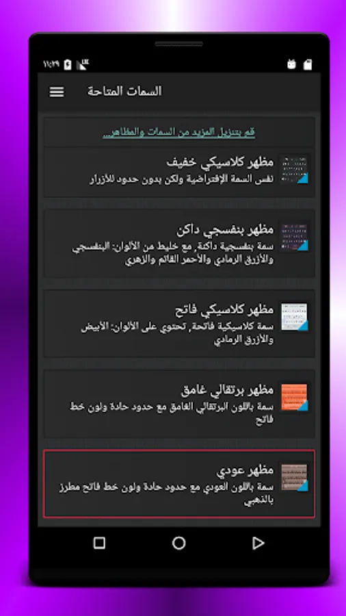 ■ أختر من القائمة الظاهرة "مظهر عودي", إذا لم تجدها أعد تشغيل الجهاز .