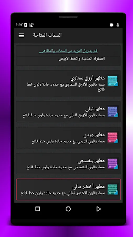 ■ أختر من القائمة الظاهرة "مظهر أخضر مائي", إذا لم تجدها أعد تشغيل الجهاز .