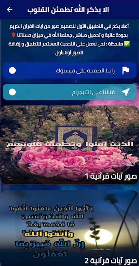 Download the application, except in the remembrance of God, that hearts are reassured, and a precedent for spreading goodness, providing the verses of the Qur’an, and enjoying the greatness of the Noble Book of God..