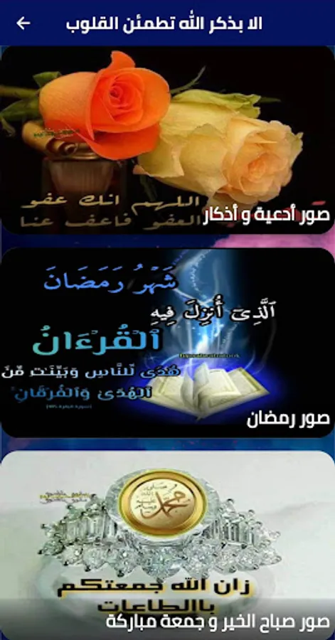 The application, except in the remembrance of God, hearts are assured, contains many images specially designed for the verses of the Noble Qur’an