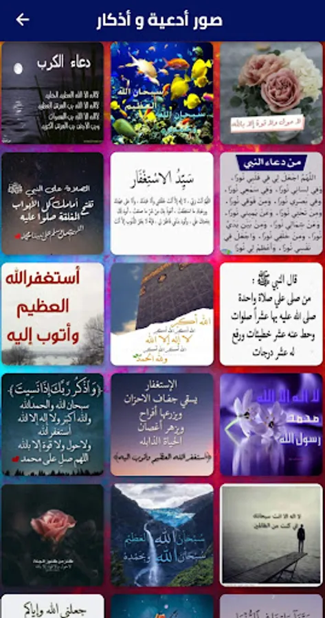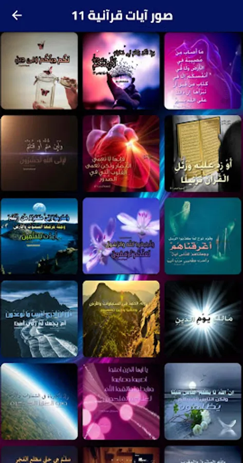 L'application, sauf dans le souvenir de Dieu, les coeurs sont assurés, contient de nombreuses images conçues spécifiquement pour les versets du Noble Coran
