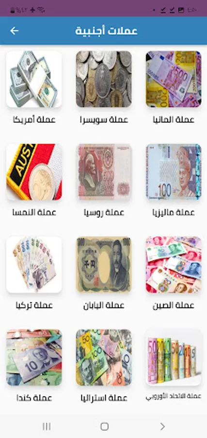 Una aplicación de moneda que también contiene un juego en el que pones a prueba tus conocimientos de monedas extranjeras y árabes