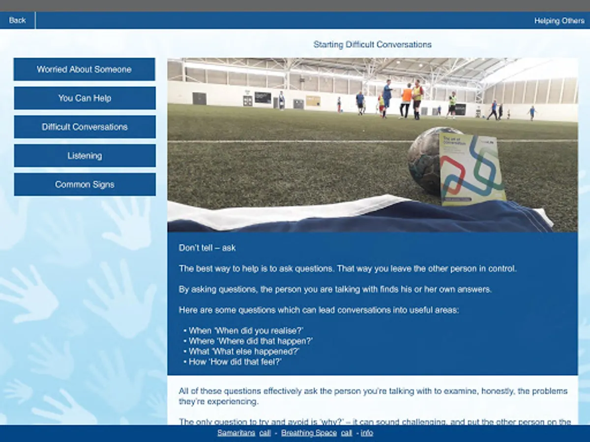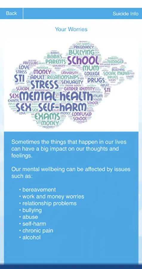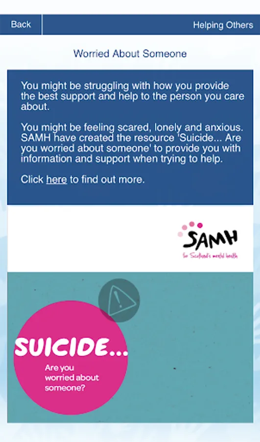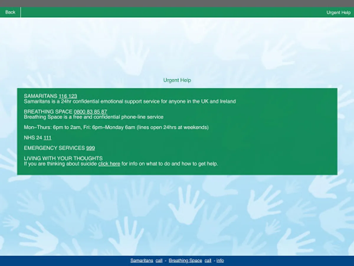 It provides helpful info for those affected in any way by suicide, extensive contact details for services in the area as well as providing users with the ability to create their own safety plan.