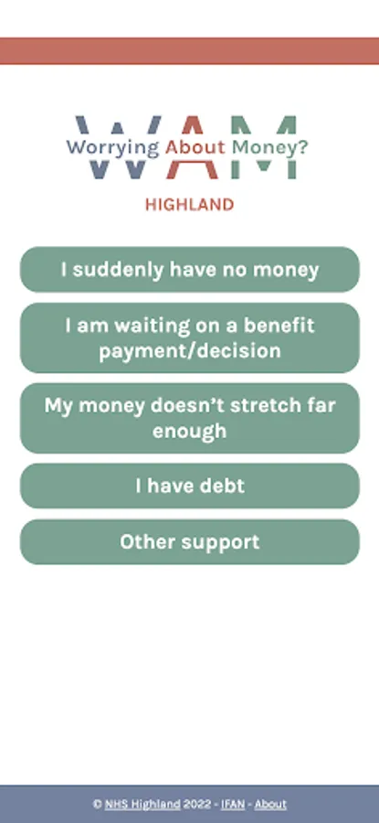 Worrying About Money? Highland is an app for people to find out more about where they can access financial support and check they are receiving all their entitlements.