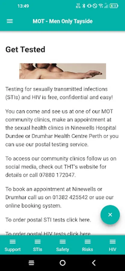 Reliable info & advice for gay & bisexual men on where to get tested for HIV, Hepatitis B & STIs plus details of treatment & support available in Tayside.