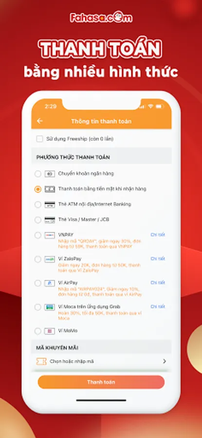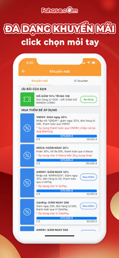- There are always good discount products, discounts up to 50%. More special offers are only available for customers who install the FAHASA - The World at Your Fingertips app. You will receive immediate notifications when there are promotions.