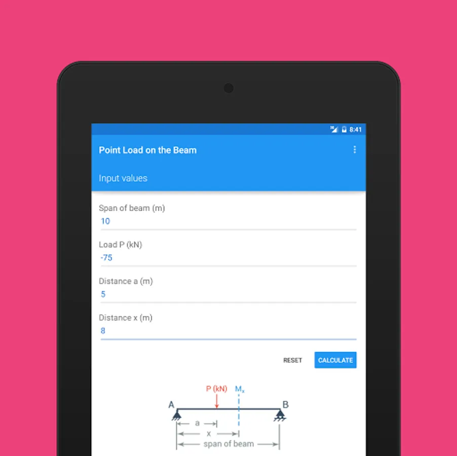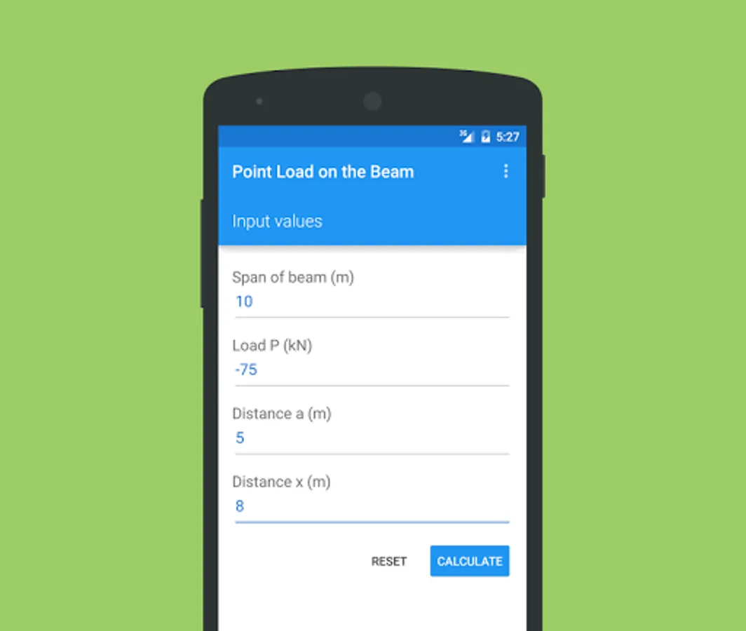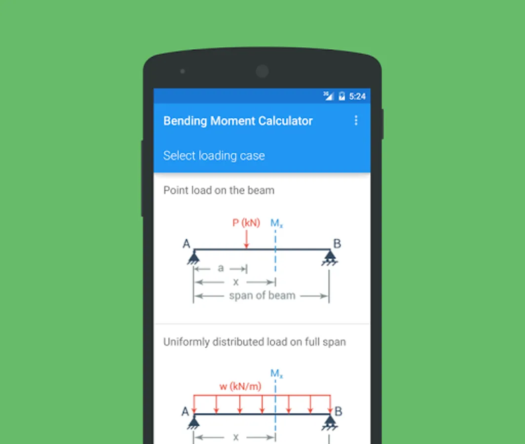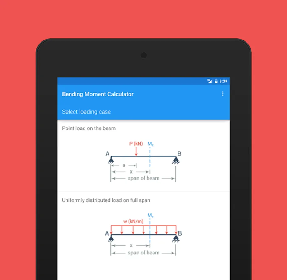 This app does not require an active internet connection for calculation of values in the case of a 'point load acting on the beam' and 'uniformly distributed load on full span', but for all other cases an internet connection is required. This constraint will be removed in future updates soon.