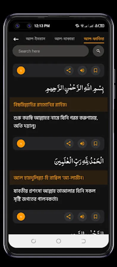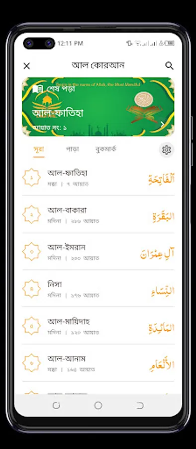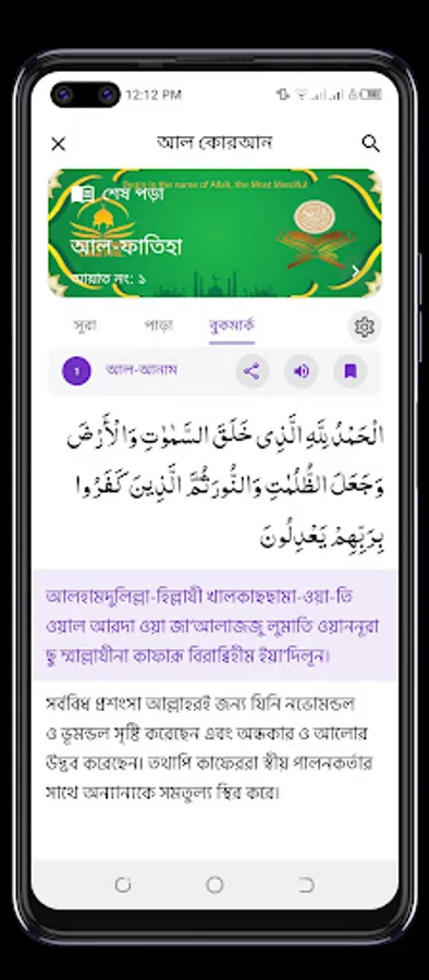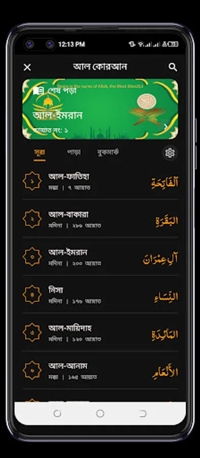 The app includes the complete text of the Quran in Arabic, along with translations in languages, including Bangla, English, Turkis. Users can select their preferred language and easily switch between different translations.