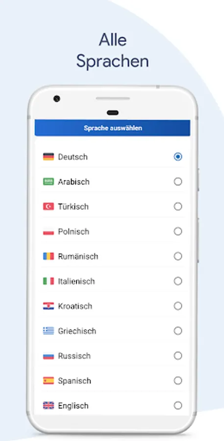 * All languages (German, Arabic, Turkish, Polish, Romanian, Italian, Croatian, Greek, Russian, Spanish, English, French, Portuguese)