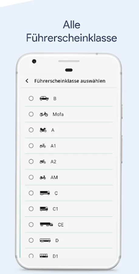 * Bus and truck driving license: Class C, C1, CE, D, D1, L and T