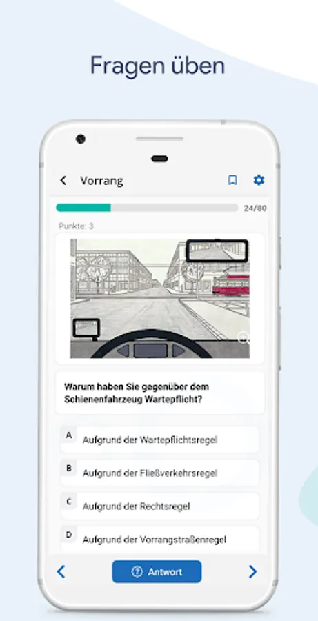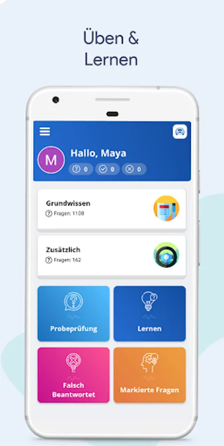 For free! Learn and practice all questions of the official driver's license test.
