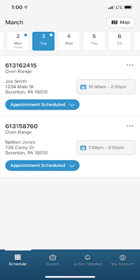 Technicians can view their daily schedules in list or map view, view work order details, provide en-route notifications to customers, submit reports, complete work and more, all from the app.
