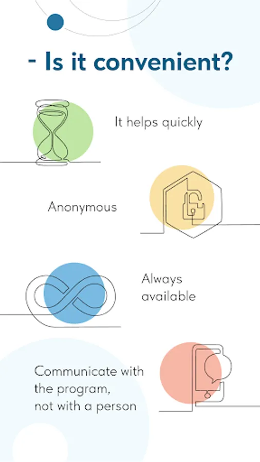 Faino doesn't replace communication with a mental health specialist and doesn't solve internal and external problems. Faino's task is to help you quickly "here and now."