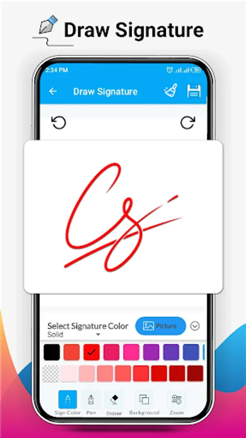 ✒ Auto Signature is the best feature of this Digital Signature Maker and Create Signature Application. You can create your Name Signature just by entering your name in the textbox. This app has many signature styles. For the E-Signature, you have to select the font style according to your requirements.