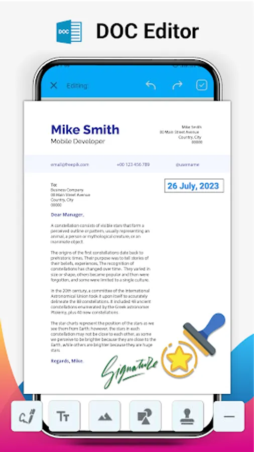 📝This document signer and PDF Signer saves a lot of time. This app also provides advantages for users who want to create new digital signatures with the help of the autograph creator and create name signature app. It is the finest Digital Signature Creator application for new and professional users. The e-signature application is for all who need the digital signature solution with an electronic signature feature.