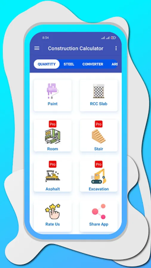 If you are a Civil Engineer or if you want to build your home, office, or anything you need to calculate the Construction material🏗️ for this purpose, many people ask different civil engineers to estimate the Construction Material to help civil engineers. So for those who want to estimate the construction material, we develop Construction Material Calculator🏠 using this app, you can calculate all the Construction Materials can calculate Concrete, Bricks🧱, Tiles🖽, Plaster🩹, Blocks🏛️, Slab Steel⚔️, Paint🎨, RCC Slab, Steel and everything related to construction.