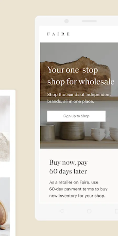 - All the same great benefits of shopping on Faire, including net 60 terms for qualified retailers and free returns on opening orders