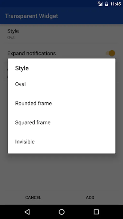 • Show a white frame styled as the system navigation bar, or make the widget completely invisible.