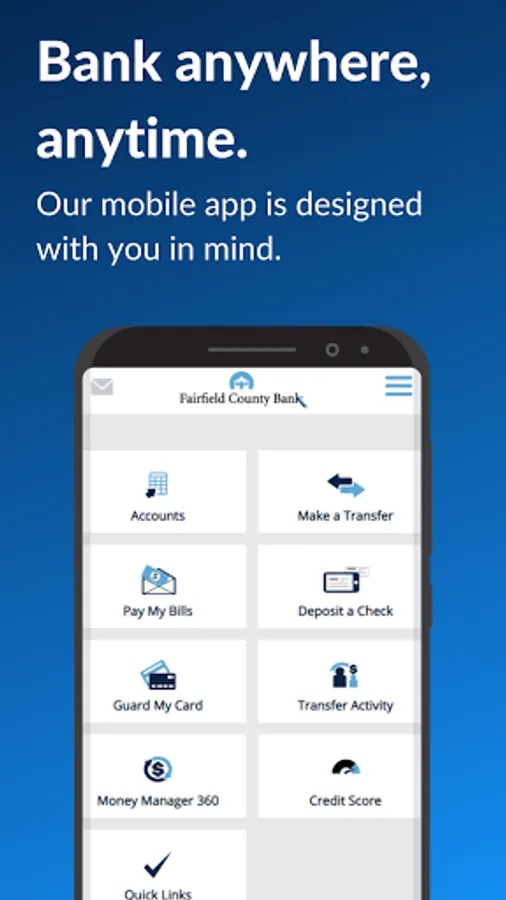 Bank wherever you are with Fairfield County Bank Mobile for Android! Available to all Fairfield County Bank customers, Fairfield County Bank Mobile allows you to check balances, pay bills, and make transfers.