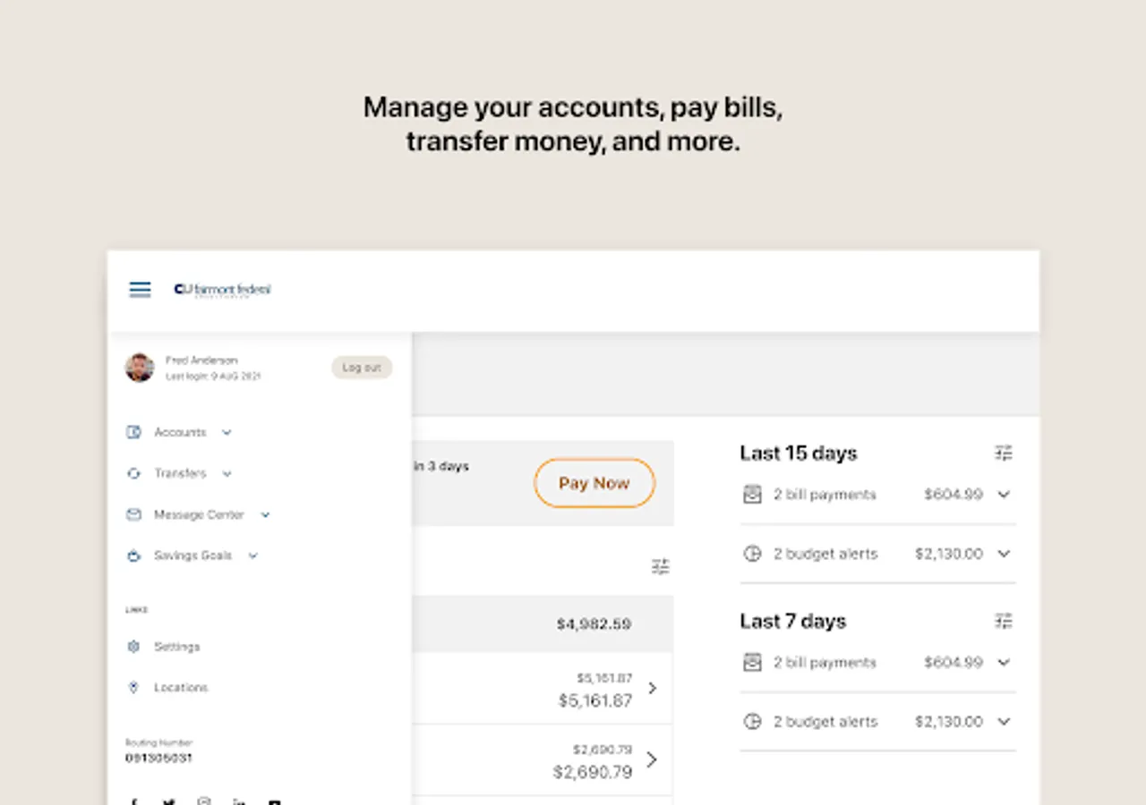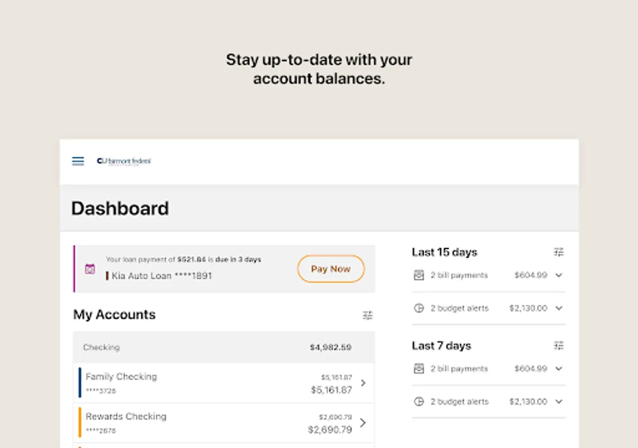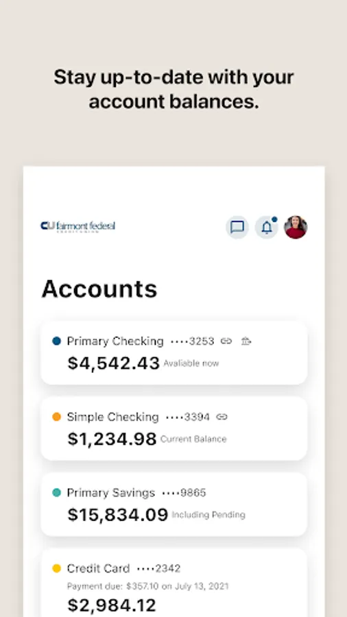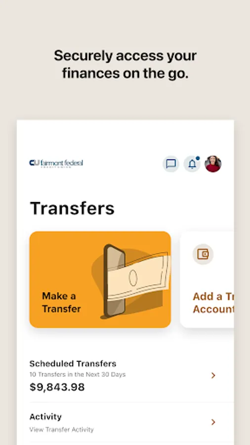 Manage your accounts on the go with Fairmont Federal Credit Union’s mobile banking app. You can access your account balances and make transfers 24/7 from anywhere. Plus it’s free and easy to use! Go mobile and let it work for you anytime, anywhere. Just use your existing online banking login credentials to sign in or visit www.fairmontfcu.com to register.