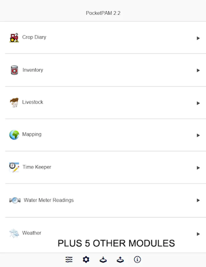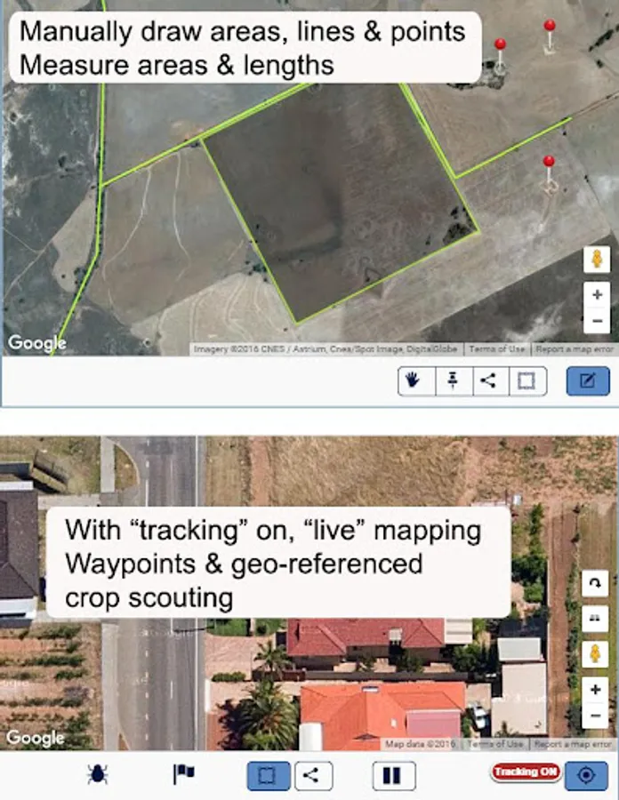 Collect farm records, spraying, fertilizer, machinery, cropping related tasks, weather records, crop scouting records (with GPS), view your farm map, collect waypoints, hand draw & measure areas & lines, "Live" map areas & lines, keep your livestock records, pasture monitoring, inventory management of farm consumables and more ... in our PocketPAM2 system. Synchronize your data directly into your PAM system on your farm computer via a WiFi or internet connection.