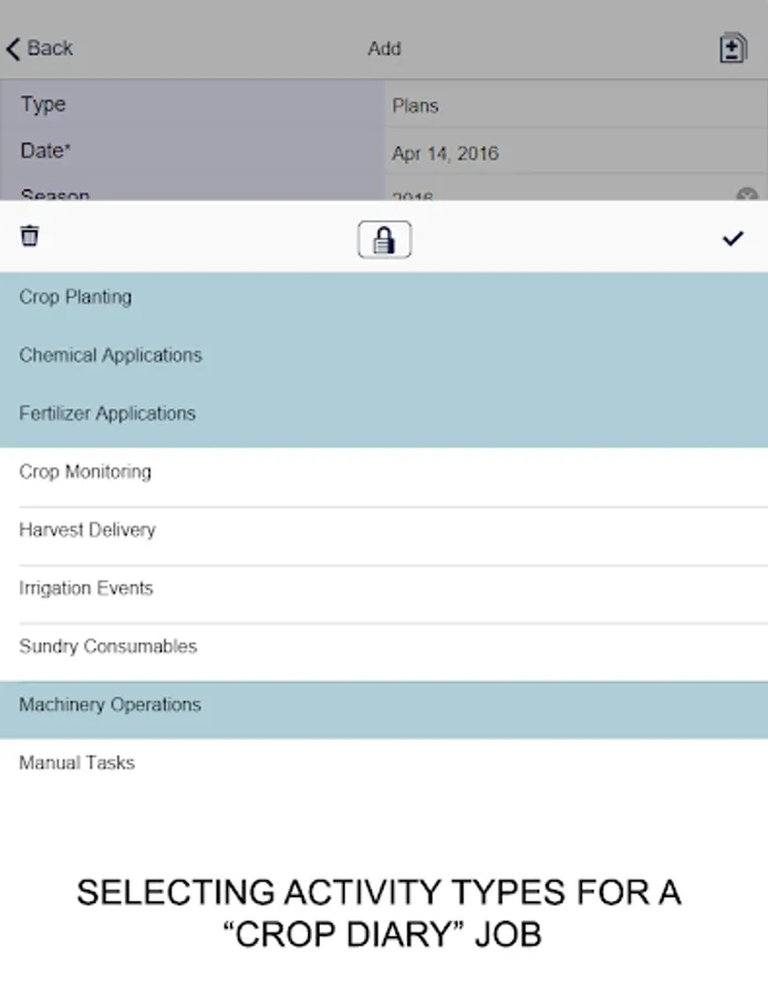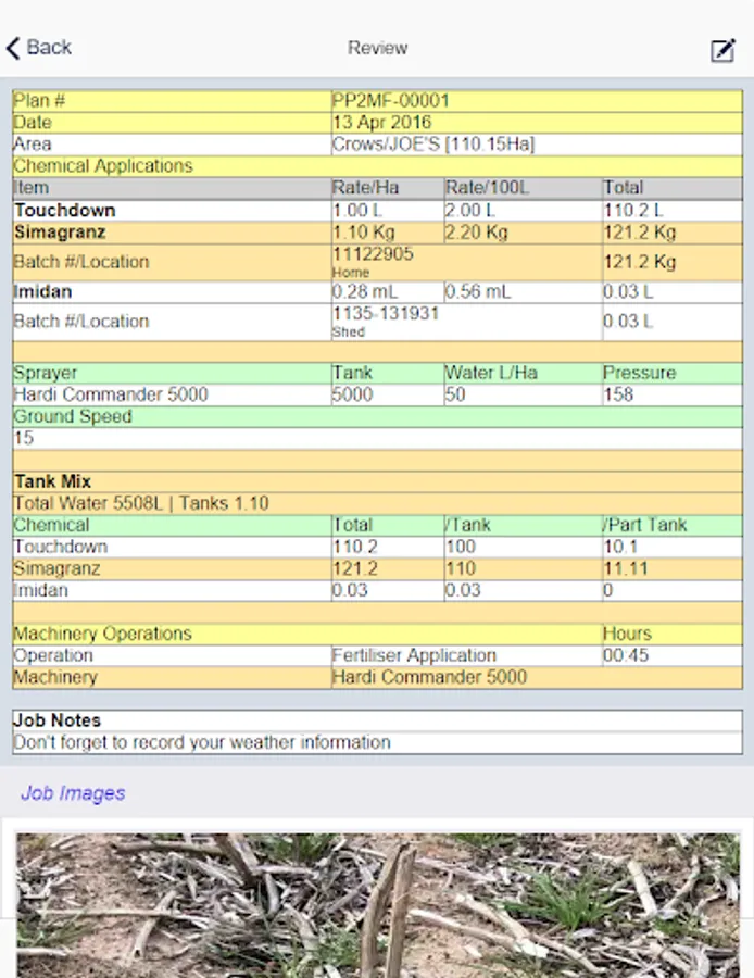 o Crop Diary - covering manual tasks, machinery events, planting records, harvesting records, irrigation records, fertilizer applications, and a comprehensive spray diary records data entry system. Optionally track your inventory batch numbers, spray weather details. Use PAM tank mixes or create your own in PocketPAM2. Pull in Planned Events from PAM (or create plans in PocketPAM2) and convert them to Actual Events.
