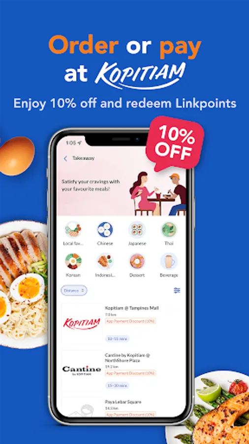 Get double joy: Save 10% on your meals when you pay via the FairPrice Group app, and redeem Linkpoints to offset your meals. Now available at more than 70 participating outlets!