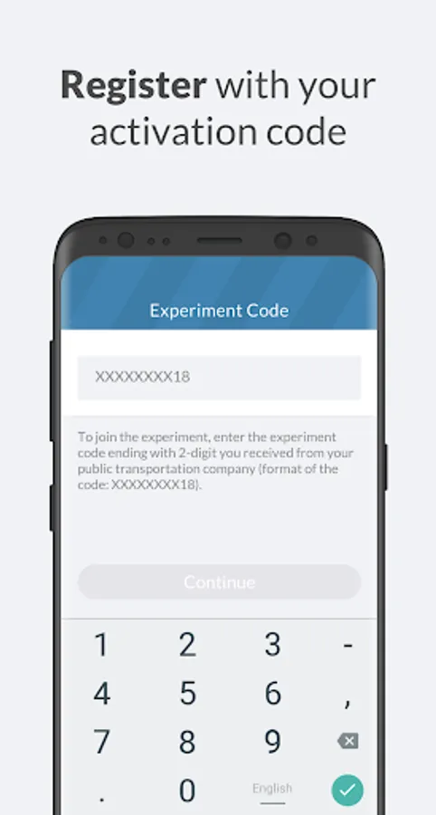 The first step of the registration process requires an activation code. This activation code defines the geographical area where you can travel in and the corresponding configuration. Once you have registered, you are ready to travel with the FTQ Lab app!