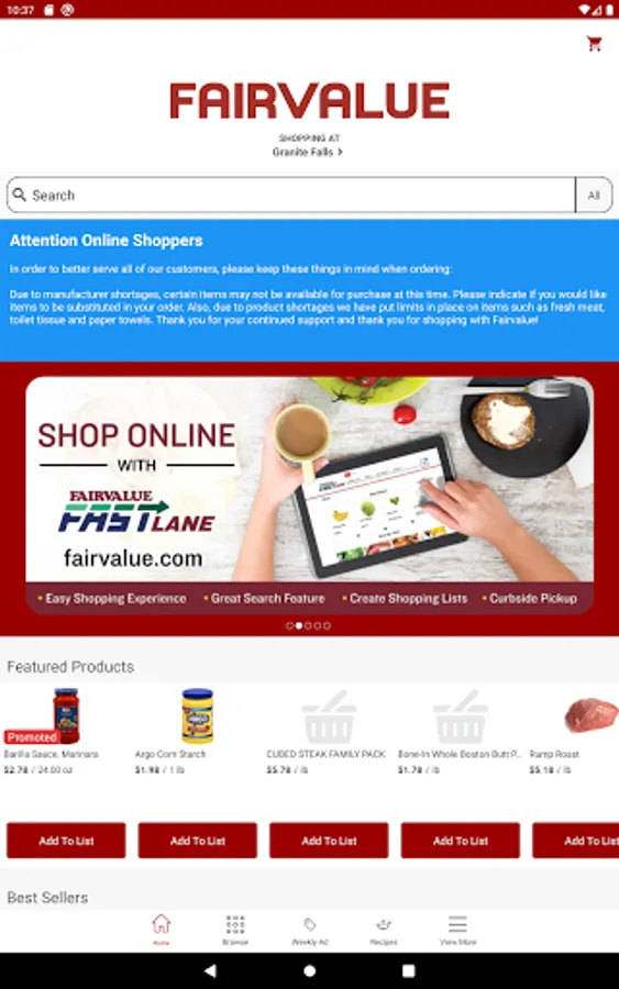 Order same-day groceries from Fairvalue and get the same prices available in-store, including all sales, special offers. Scan products in your pantry to build your lists, saving you time and making sure you get the same products, even when having the store shop your order.