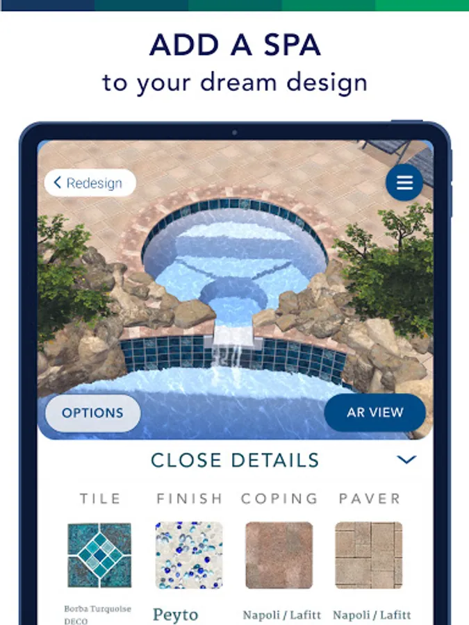 This update includes access to new “Dream Pools,” showcasing how a builder can take your pool design to the next level. You can also customize brand new spas along with your unique pool design. With the addition of two spa shapes, stair placement or deep end placement, and decorative veneers, enhance your pool design for your space and aesthetic.