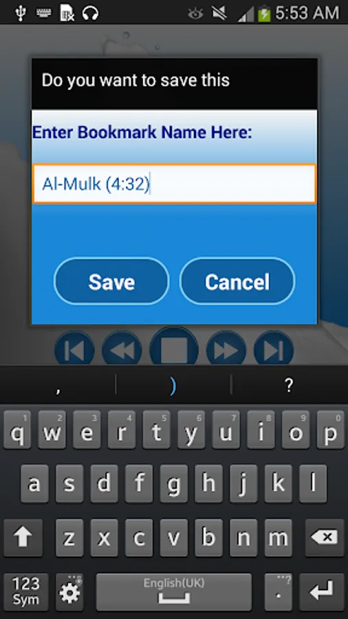 Through "Audio Bookmark" you can save the audio point, let say save audio at time 01:04 of surah yaseen, you can listen it in future from 01:04 onward...