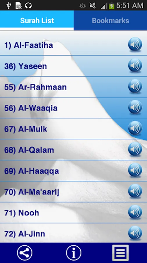 This app lets you listen to the recitation of some popular Quranic Surahs with Urdu Translation.