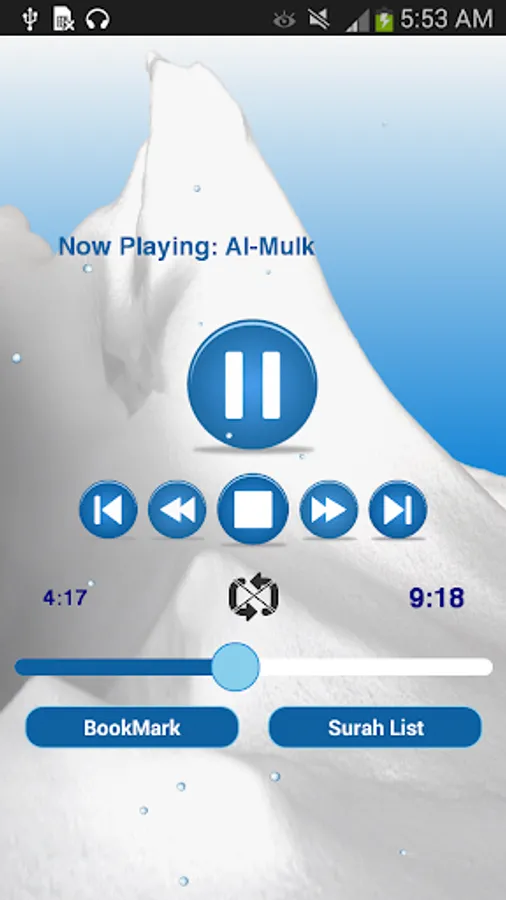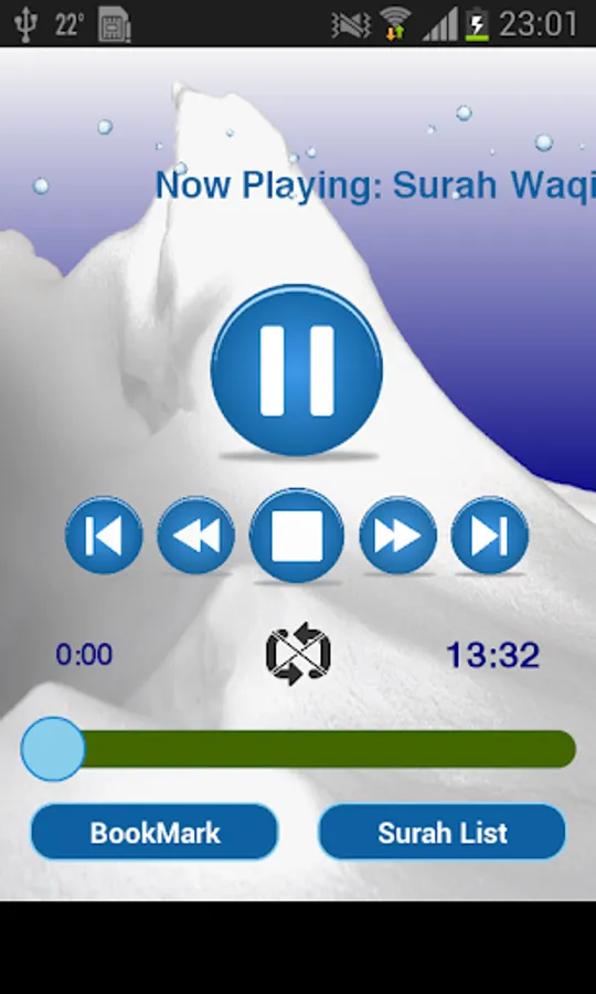 Next, Previous, Rewind, Forward, Play, Pause, and Repeat audio.