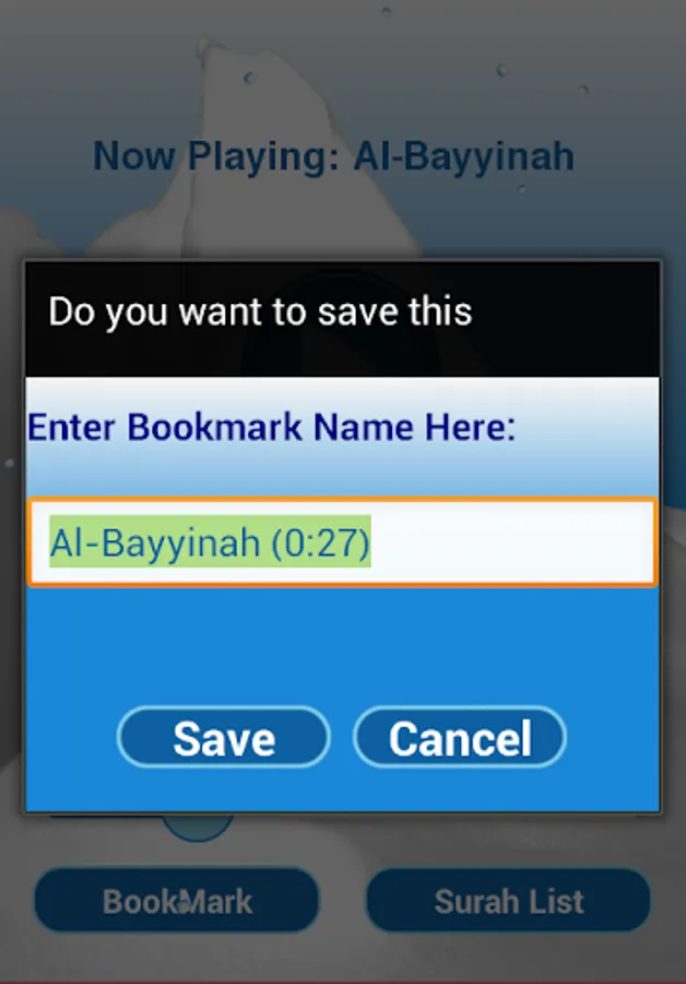 Through "Audio Bookmark" you can save the audio point, let say save audio at time 0:40 of surah tin, you can listen it in future from 0:40 onward...