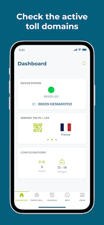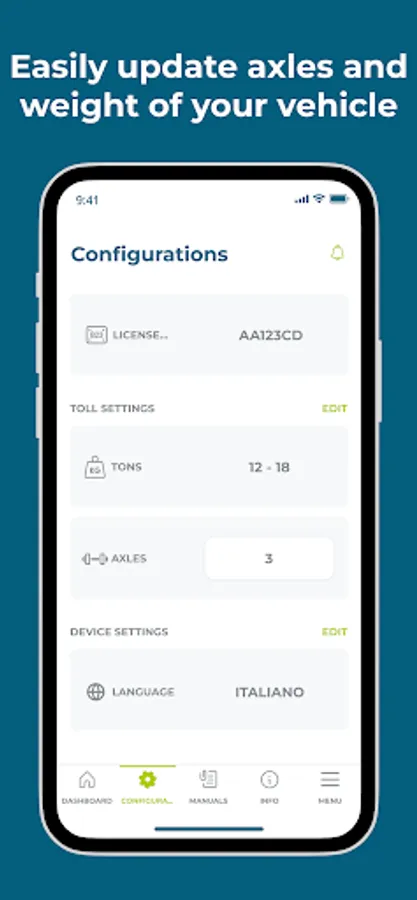 Axles and weight category can be easily and quickly updated by the driver and thanks to the push notification system he will receive real-time notifications about each update made via APP or via OBU.