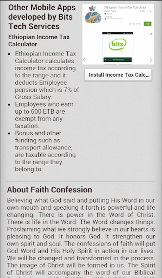 The Bible tells us to “hold fast to the confession of faith.” Confessing God’s Word is the best way of planting the Word of God into our heart. You can have what you say – if you say God’s Word. The confessions in this App is based on the Word of God. Sow this word in your heart and build it into your walk. Faith is the reality of things hoped for, the evidence of things not seen.
