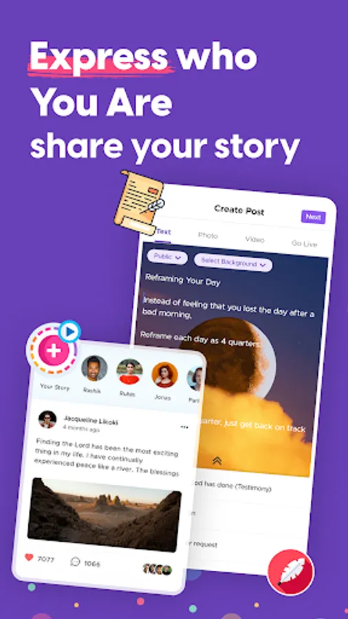 Express yourself through your profile and posts, watch, react, interact with the community and stay in touch with your friends.