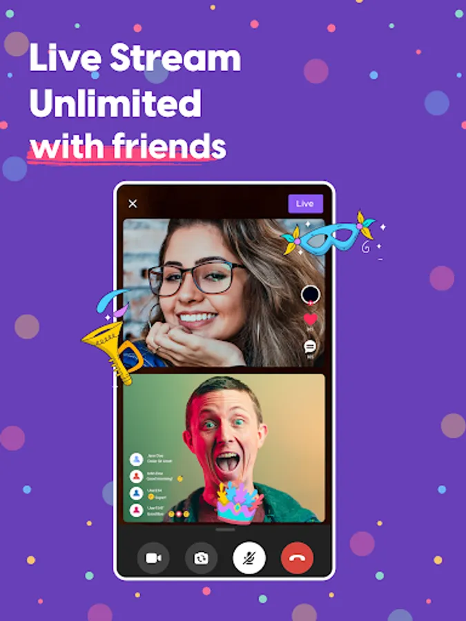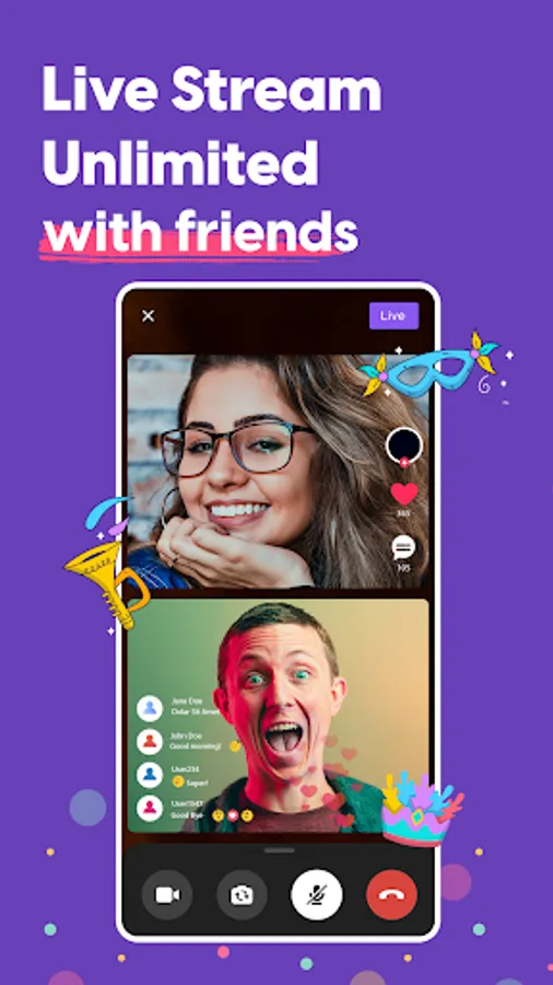 LIVE STREAM: Share fun moments with your friends as you watch and stream together. Start live video chat and invite friends to join. Interact, share messages, stickers, discuss and have fun.