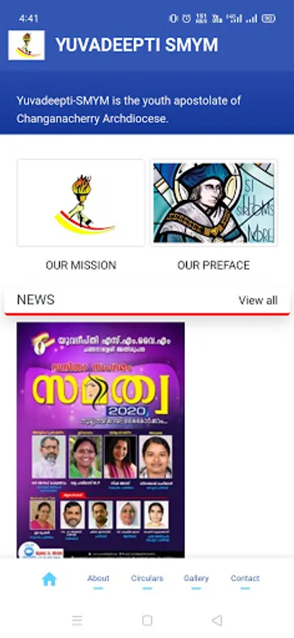 The Youth Apostolate -YUVADEEPTI- of the Archdiocese of Changanacherry was established on 3rd December 1972. The founder of this Organization is His Grace Mar Joseph Powathil and the movement was inaugurated by Mar. Antony Padiyara at Kallarackal HalI, S. B.College Changanacherry. Yuvadeepti-SMYM is the youth apostolate of Changanacherry Archdiocese. Yuvadeepti is a part of KCYM – Kerala Catholic Youth Movement, which is affiliated to ICYM – Indian Catholic Youth Movement. As the name suggests Yuvadeepti is national wide catholic youth organization which is aiming at the integral development of every youth. The word “Yuvadeepti” is joined by two words “Yuva” and “Deepti”. “Yuva” means youth and “Deepti” means light. Yes we are to give the light of Jesus to our youth.