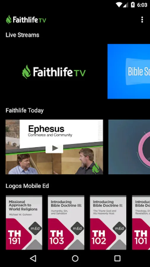 Watch Logos Mobile Education, Faithlife TV Live, Bible Screen, and more.
