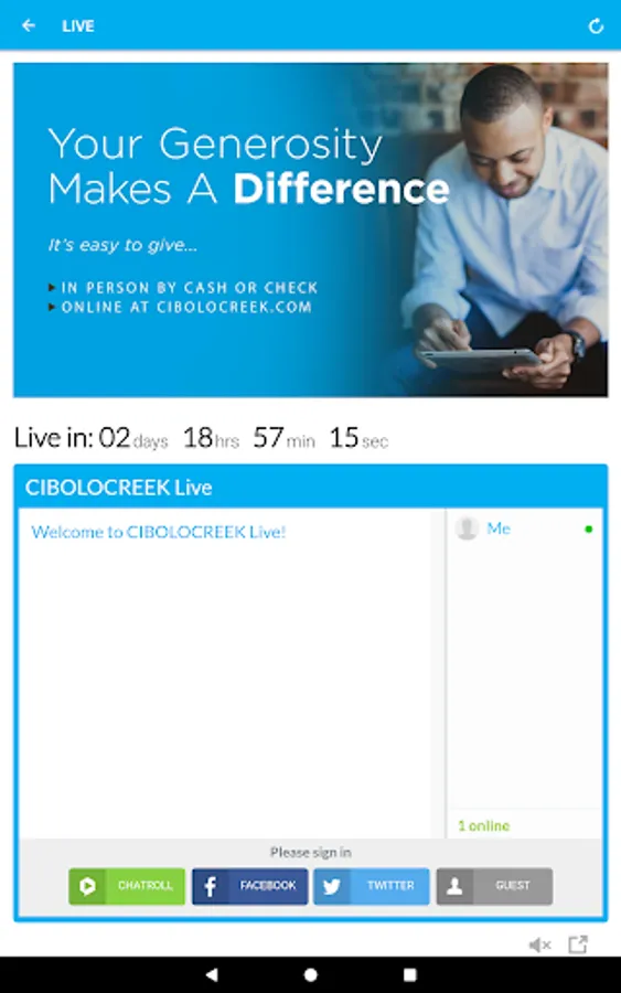Download the CIBOLOCREEK app today and get access to custom nofications, watch on demand and live service, view events, read articles, give online, find out where to serve and more!