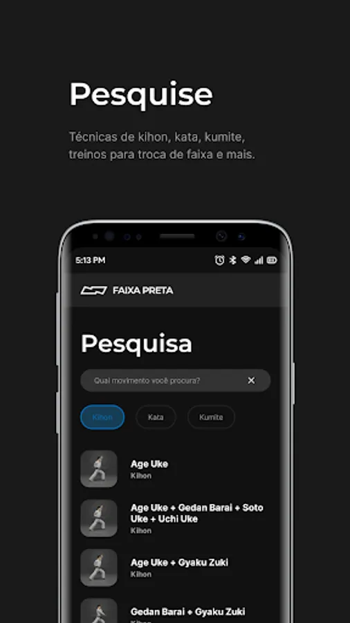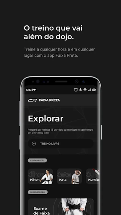The Black Belt is the proposal of an application to help karatekas in their individual training, with features that facilitate their learning and improvement. Also, training execution reports can be found in the statistics section of the app.