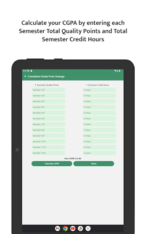 Find your Cumulative Grade Points Average (CGPA), Click Calculate CGPA: