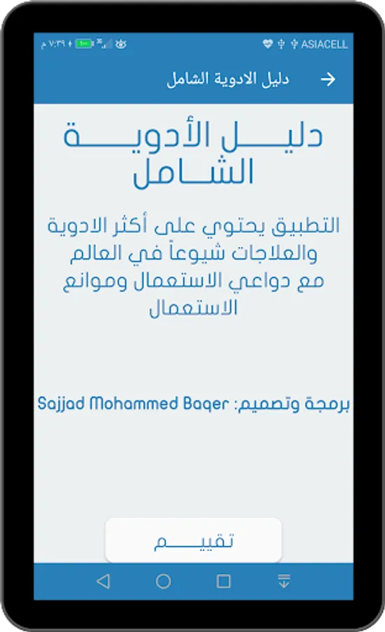 The application has the advantage of searching for medicine in Arabic and English by scientific and commercial name