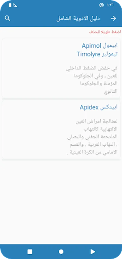 The comprehensive drug guide application provides you with more than 1,000,000 prescriptions with their uses and contraindications, in addition to their scientific and commercial names, in a very small size and a beautiful, modern and smooth interface.