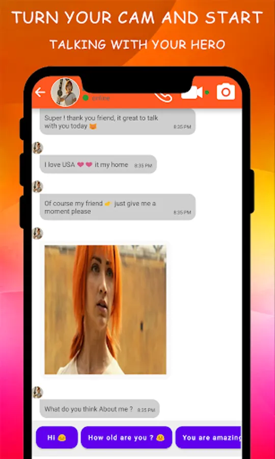 Here are some amazing feature of this calling vid call and chat simulator with the Emily Rudd .