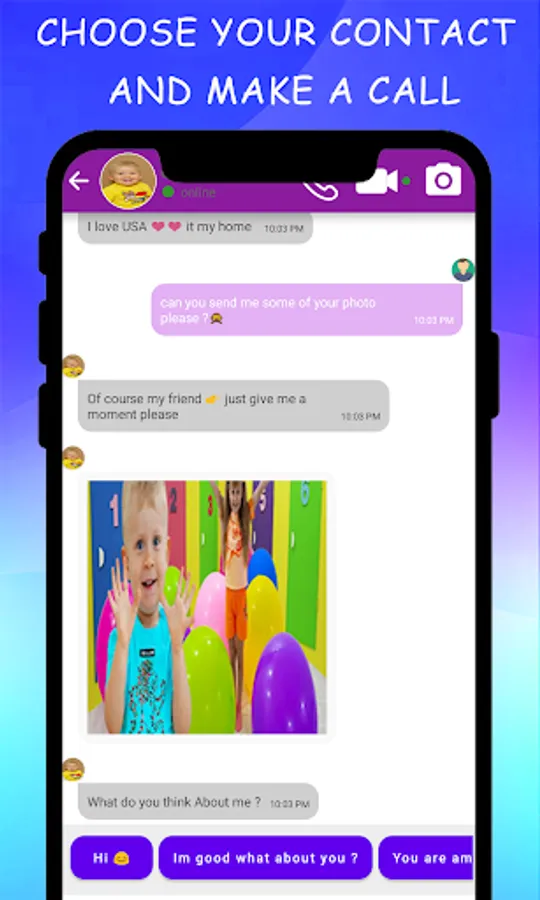 oliver and daina and roma Comedy Video call and chat is a simple and easy application for you to make a fake call video with your oliver and daina and roma and chat live with her,