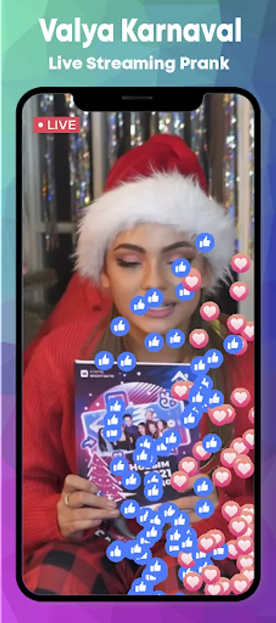 The application "Valya Karnaval Fake Call & Video" with an elegant and fun design, to simulate incoming calls, video calls, and live broadcasts.