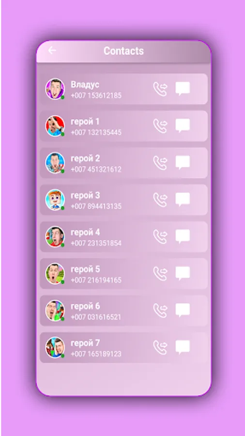 Владус call & chat. Very funny application with Владус .This app was designed to simulate fake Call and chat Владус to make a prank to your friends and let them believes that you have contact Владус and friends📲📲. You have a simple Button « Contacts » can you make call voice or live chat catore video with y characters toys with his number phone like Владус … it very funny to enjoy. 😱😨