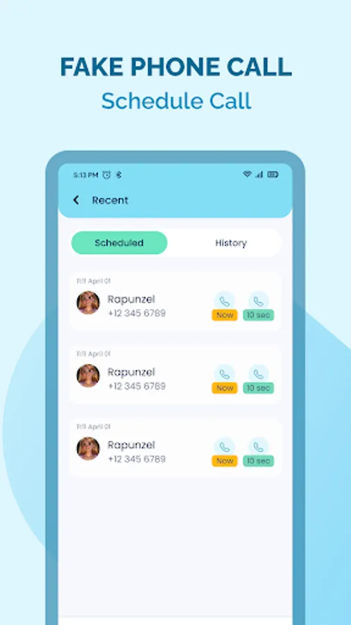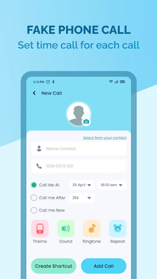 The Fake phone call - prank call app offers many customizable options to make your fake call extremely authentic. Choose from a variety of pre-recorded voices to simulate a real conversation, or even record your own custom audio to make it truly personal. Schedule the call to appear as if it came at the right time. Set the name and the image of the person you want to appear in the incoming call fake. With Fake Phone Call, you'll have full control over every detail, presenting a convincing and trustworthy experience.